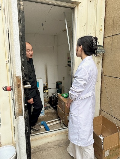 在医院厨房,从食材的溯源标签到操作台的卫生状况,逐一排查,只为守护孕产妇及患者“舌尖上的安全”。