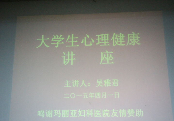 从发奋苦读到走进象牙塔,大学生理应为自己所取得的成绩开心,可是,媒体不断爆出来的大学生自杀事件,不得不对这些花季年龄而逝去的生命扼腕。就在甘肃玛丽亚妇科医院与兰州城市学院举行心理健康讲座的当天,福建晚报报道,一年仅21岁的女大学生在前一天坠楼自杀。从报道来看,该女子在高中时学习名列前茅,上大学后精神突然出现问题,最后自杀身亡。本应是天之骄子的大学生,为何心理如此脆弱?甘肃玛丽亚妇科医院特邀心理健康顾问吴亚军老师通过现场测试和引经据典的分析,鼓励大学生用“阳光生态的生存意境”去面对自己的人生。